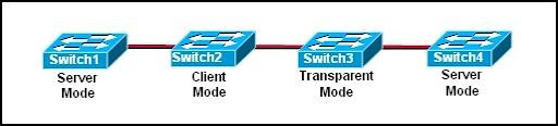 • Switch3 will pass the VTP update to Switch4.